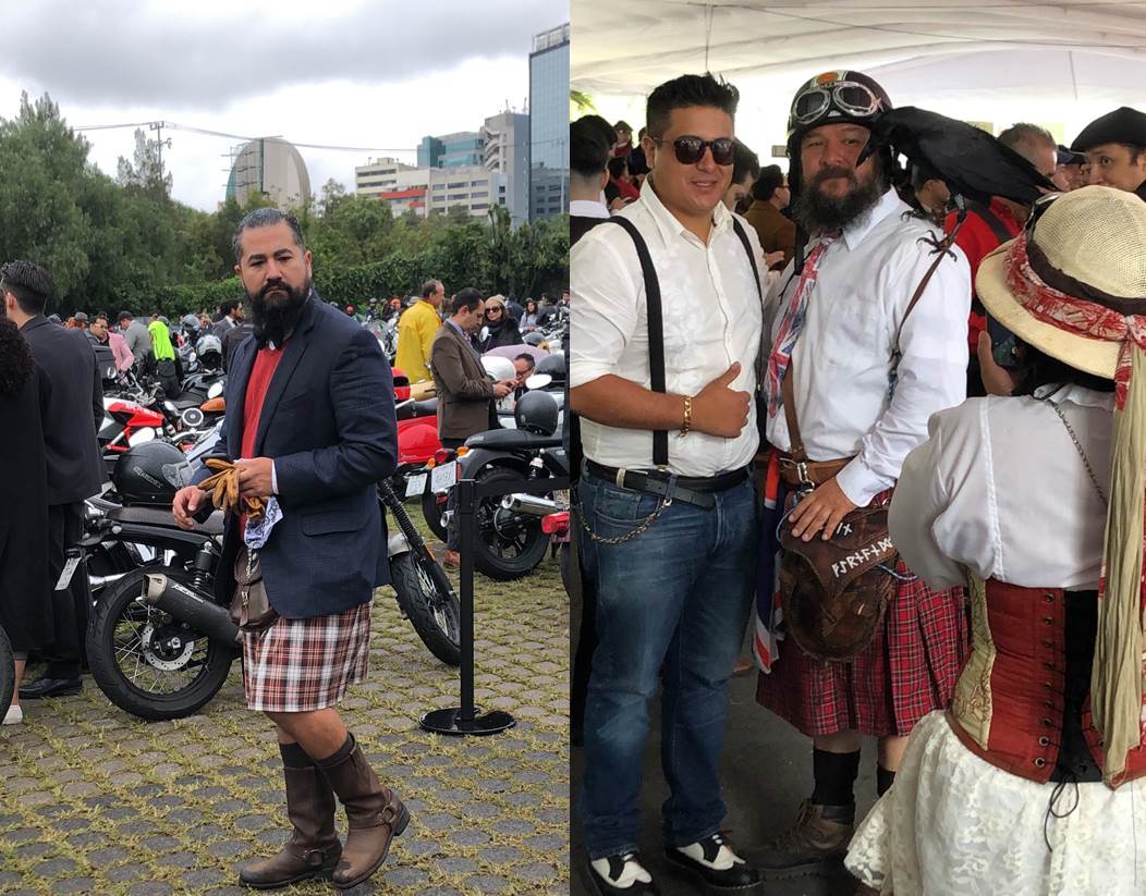 Después de unos 40 minutos llegamos a la concentración de partida (con el pecho empapado, ya que Luis tuvo a bien quitarle la salpicadera trasera a su Scrambler Café Racer y me iba salpicando). Llegamos justo a tiempo pues esperamos talvez 10 o 15 minutos antes de formar parte de los primeros contingentes en hacer el recorrido oficial (gracias a los brazaletes que Triumph y Javi repartieron para aquellos que donaron a la causa). Tiempo suficiente para saludar a varios amigos, apreciar un par de monturas espectaculares y uno quo otro atuendo épico.